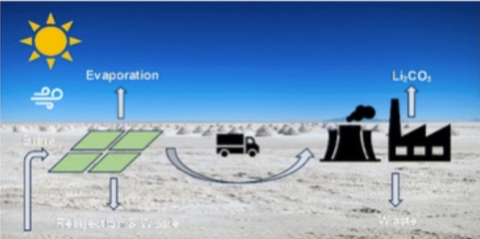 그림. 증발 등을 이용한 탄산리튬 생산 (출처 : pubs.rsc.org)