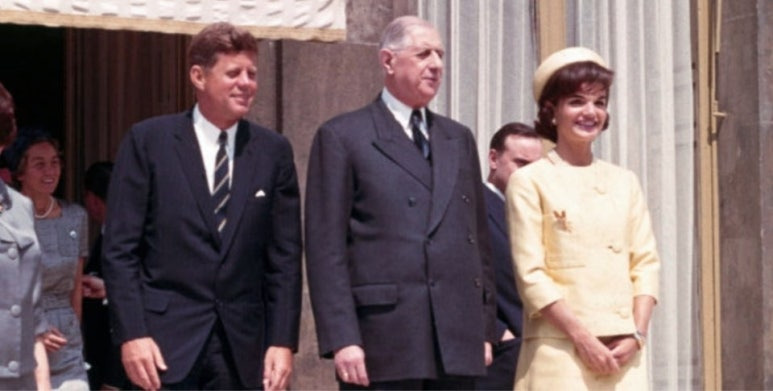 그림. 샤롤 드골 프랑스 전대통령(196 cm)와 케네디 전 미국대통령(185 cm)